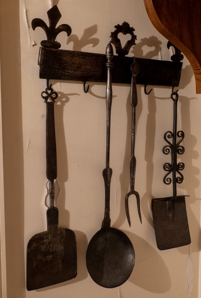 • une pelle à cendre, une pique à rot et une pelle plate à pâtisserie, le tout en fer
