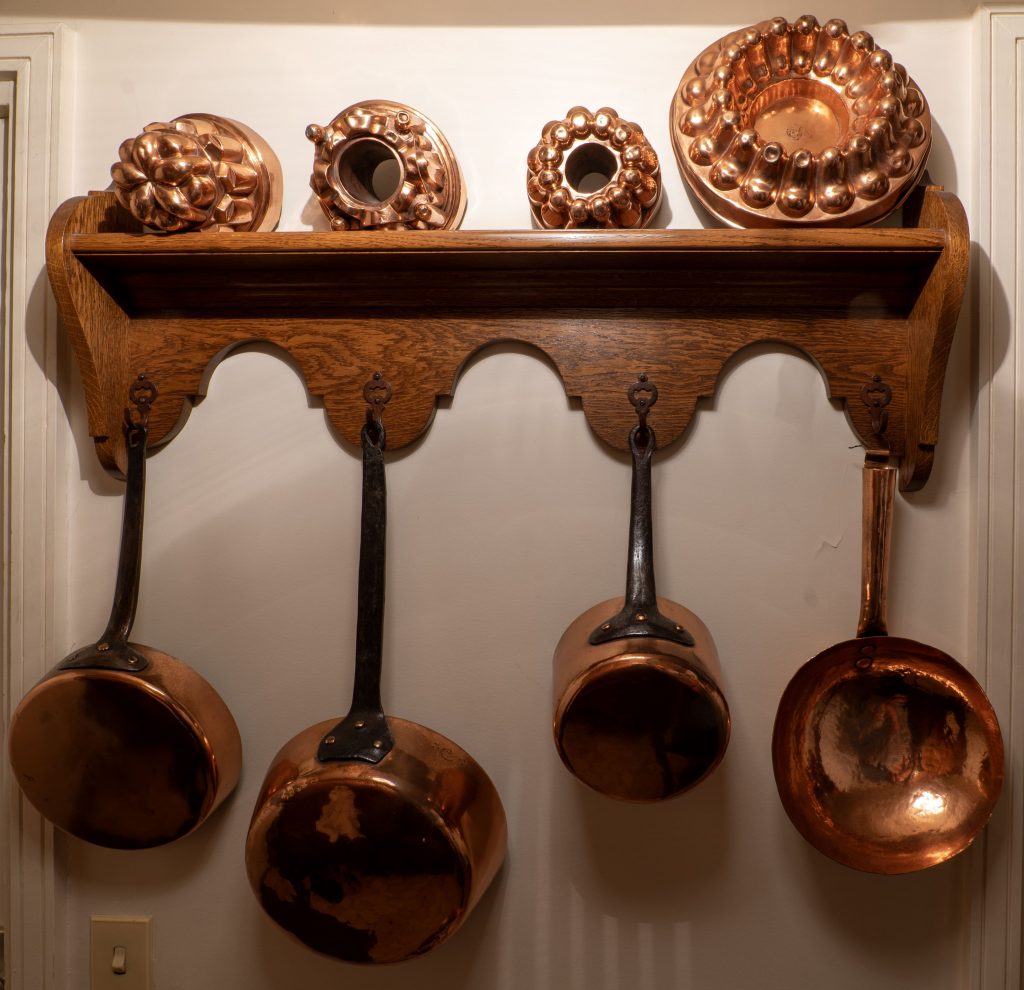 • 4 casseroles et un poêlon (cuivre rouge) ;
