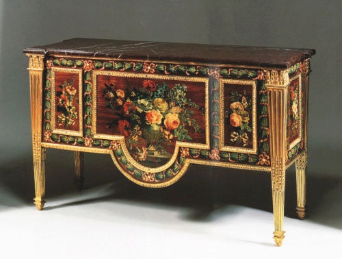 Par la qualité de son exécution, la richesse de son décor peint et la présence de l’estampille Cosson, cette commode s’impose comme un exemple majeur du mobilier peint parisien de la fin de l’Ancien Régime. Elle illustre un moment charnière où l’ébénisterie française explore de nouvelles voies esthétiques, annonçant déjà les recherches décoratives du néoclassicisme tout en conservant l’élégance et la sensualité héritées du XVIIIᵉ siècle.